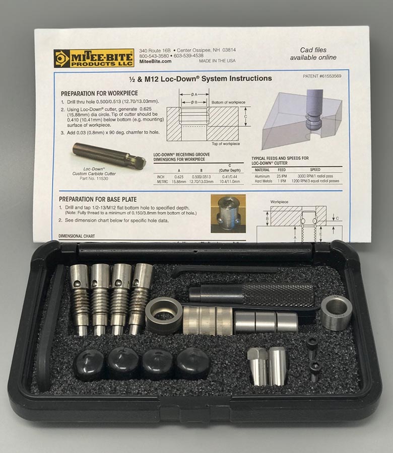 The Mitee-Bite Loc-Down® System was designed to be a programmer’s and operator’s dream for quickly and easily securing small to large aerospace parts. Its compact design allows for tighter pattern on grid plates compared to other options in the marketplace saving material cost on expensive aerospace alloys.